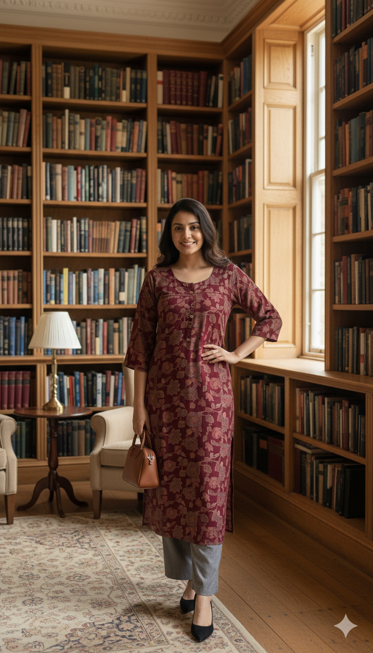 Discover the perfect blend of comfort and traditional elegance with this beautiful maroon kurti. Crafted from high-quality, breathable Cotton fabric, this piece is ideal for daily wear, office settings, or casual outings.